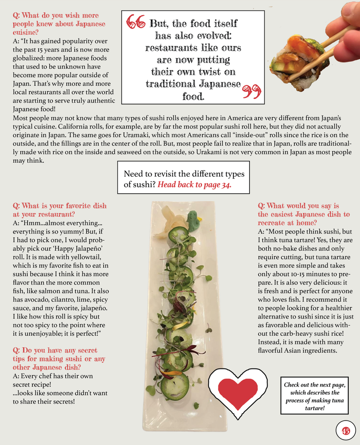 Extracted from my interview with Chef Misayo, I added a meaningful pull quote that acts as a cooking tip for the readers following this recipe. It uses the same style as the pull quote on the previous page to add consistency.