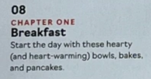LIST OF SECTIONS: Breakfast, Appetizers, Soups and Chilis, Pan-Fried Dinners, Braises and Stews, Seafood, Roasts, Veggies and Sides, and Baking and Pastry